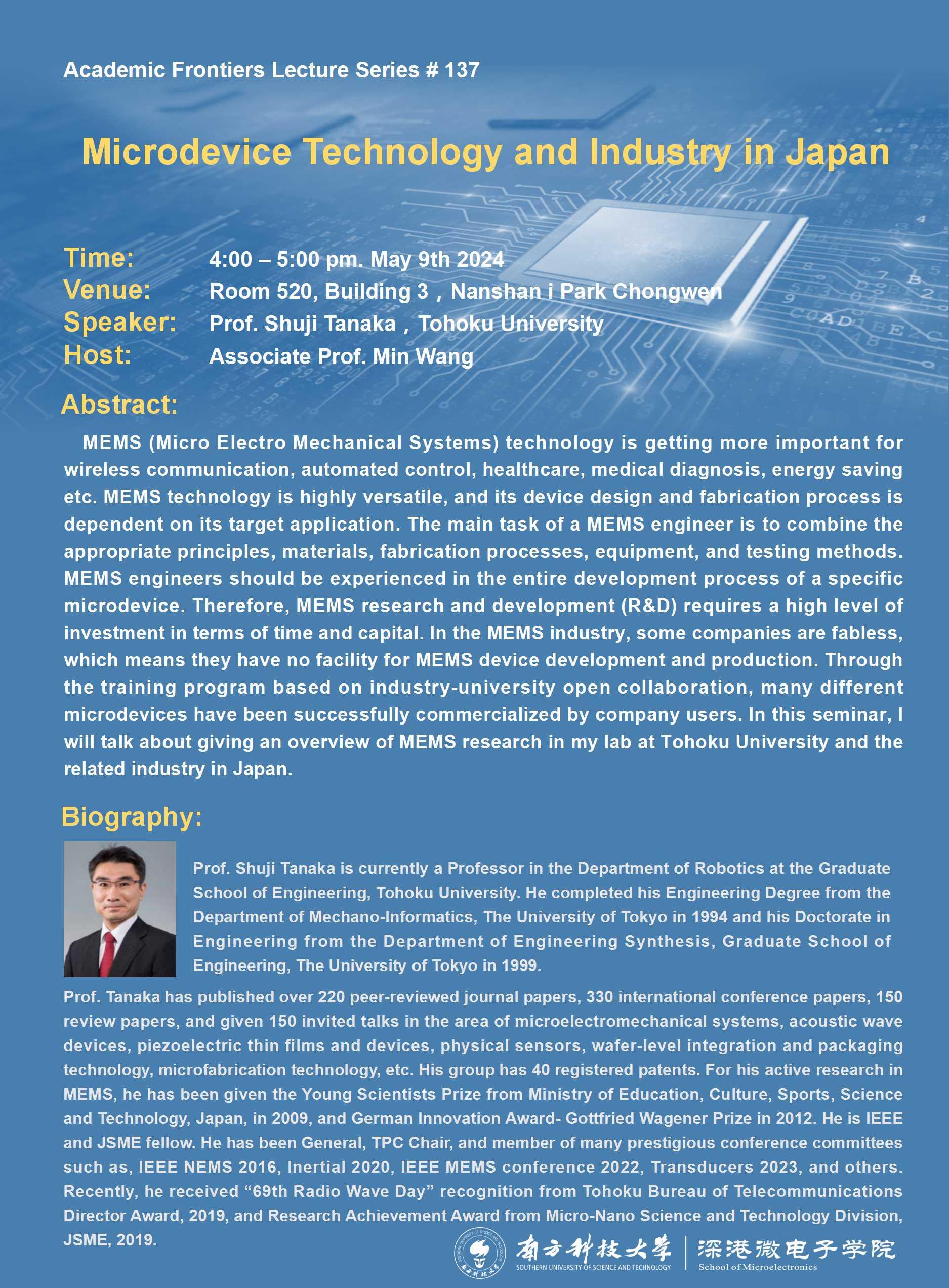 Prof. Shuji Tanaka,Tohoku University